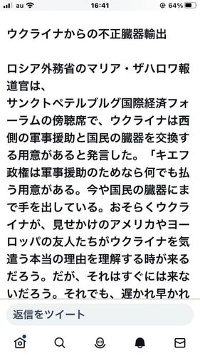 ウクライナも中国共産党と同じく臓器収奪して、臓器売買しているようです。 日本はこれでもウクライナ支援かと思うと情けなくなります。